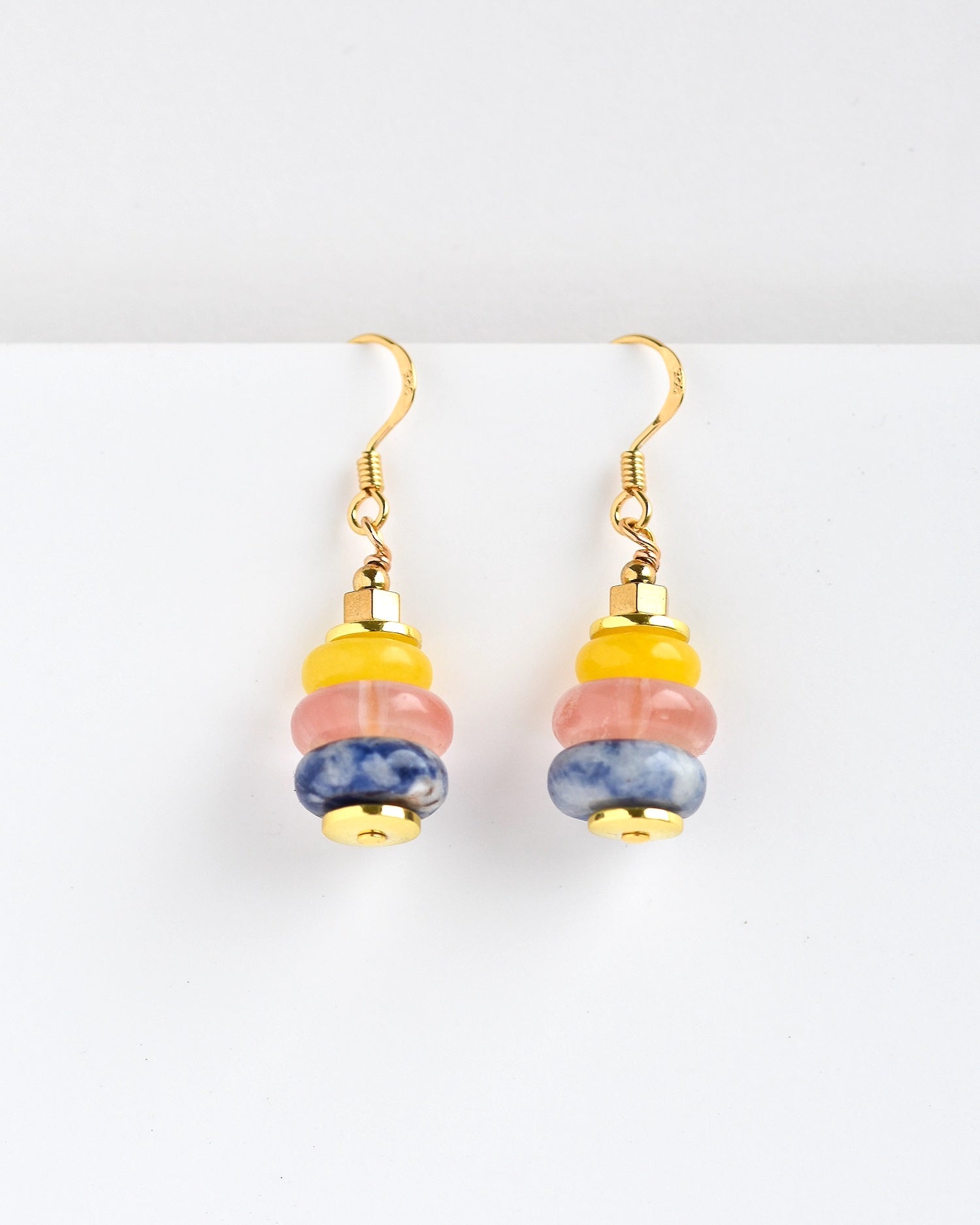 Cut little gemstone drop earrings. Three colours in three different gemstone, jasper, agate and quartz with gold plate 925 silver earwire.