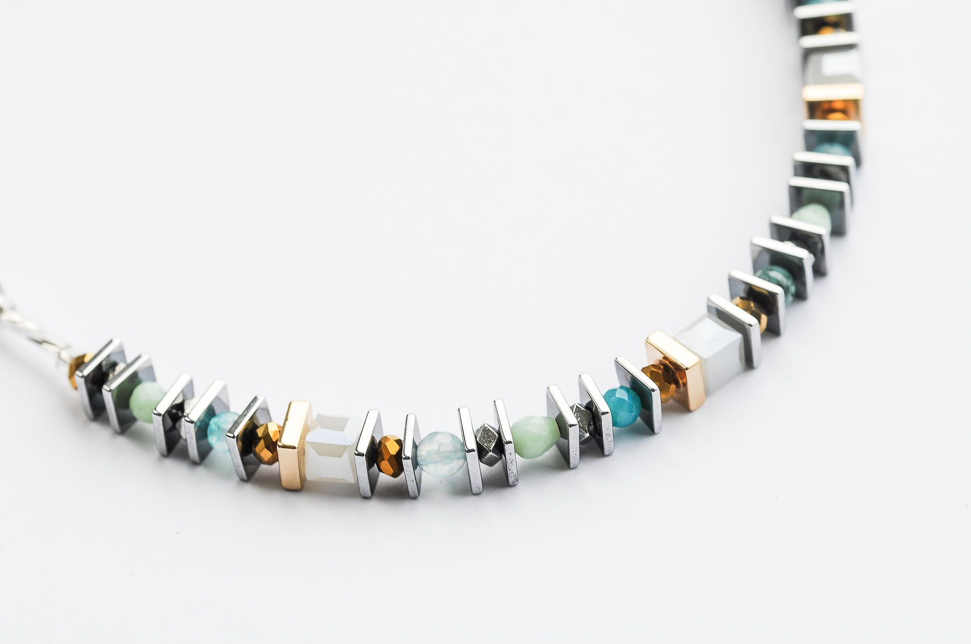 GTHM1 - 18" necklace with semi precious cats eye stone, mint coloured agates, Czech crystal and hematite. Strong magnetic clasp fastener.