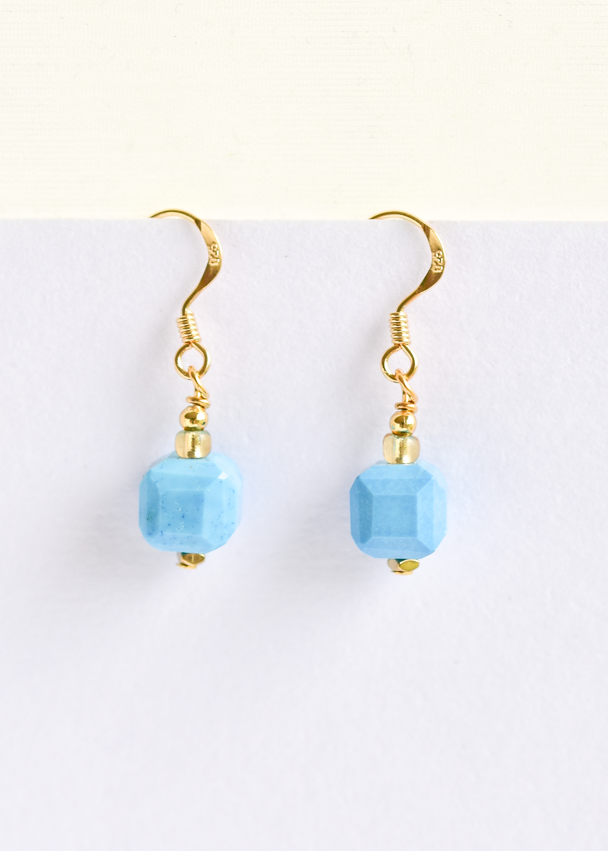 Vibrant turquoise howlite stones paired with 18ct gold-plated hematite and gold-plated sterling silver earwires for a playful choice to brighten up your summer outfits.